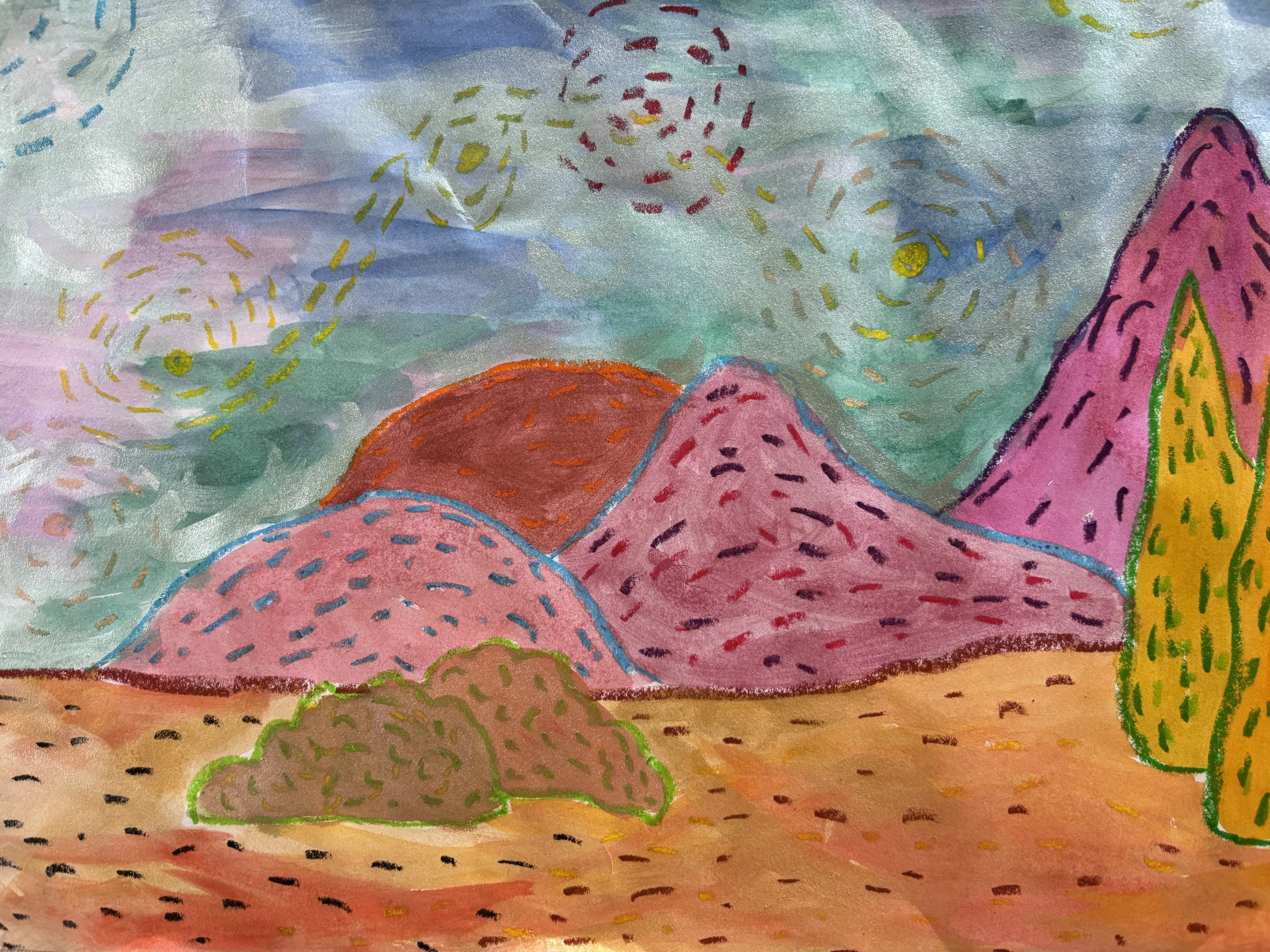 Making magic from foreground to far-away lands. In this whimsical lesson, young artists will step into the wonderfully curious world of Dr. Seuss and paint their own magical Truffula Trees. With striped trunks and fluffy, colourful tufts (said to be softer than silk and smelling like butterfly milk!), these trees spark instant delight and imagination.While real Truffula Trees take years and years to grow, today’s creations will spring to life in just one joyful session. Using watercolours, children will explore space through atmospheric perspective—learning how things can appear closer or further away—and experiment with implied texture to suggest softness and depth. This lesson blends storytelling, imagination and gentle art concepts into a dreamy artwork that feels playful, magical and full of Seussian charm. Oh the places your art will go.