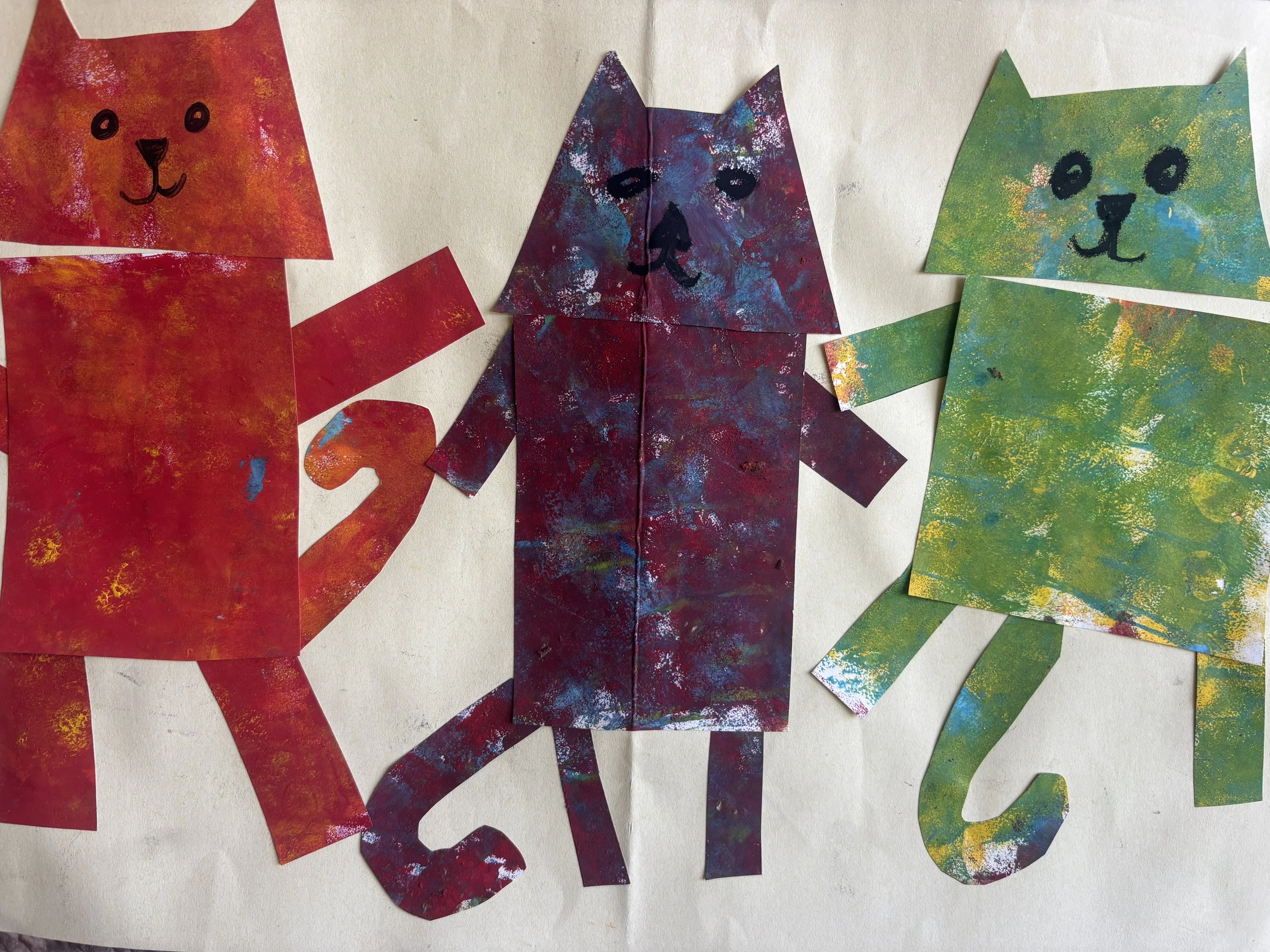 Inspired by the delightful picture book Cat Tales by Michael Hall, this lesson is just the cat’s whiskers. It invites young artists into a world where curious cats chase words and shapes on a tongue-twisting adventure. As the story introduces homophones and homonyms, children will also discover how simple geometric shapes, bright colours and energetic lines can work together to create movement and meaning in art.Using bold primary and secondary colours, artists will explore colour theory in a fun, hands-on way while arranging shapes and lines to bring their artwork to life. This lesson blends literacy and visual art beautifully—encouraging curiosity, playful thinking and creative confidence—making it the purr-fect companion to a colour-filled art session.